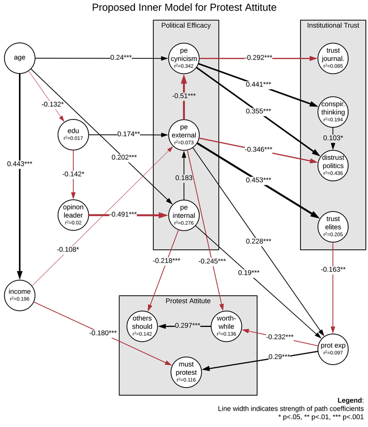Energy infrastructure projects often bring along protests. Protests as a form of political participation reveal perceptions of locals regarding a specific project. However, it is still unclear who protesters are and what drives them. Specifically, the attitude towards protest has not been extensively studied. We conducted an online survey study with 464 participants and used partially-least squares structural equation modeling to identify antecedents to protest attitudes. We included opinion leadership, trust in institutions, political efficacy and demographic factors in our model to determine possible causal relationships between these factors. We found that protest attitude is predominantly influenced by income, protest experience and political efficacy. No direct association was found for trust in institutions and opinion leadership.